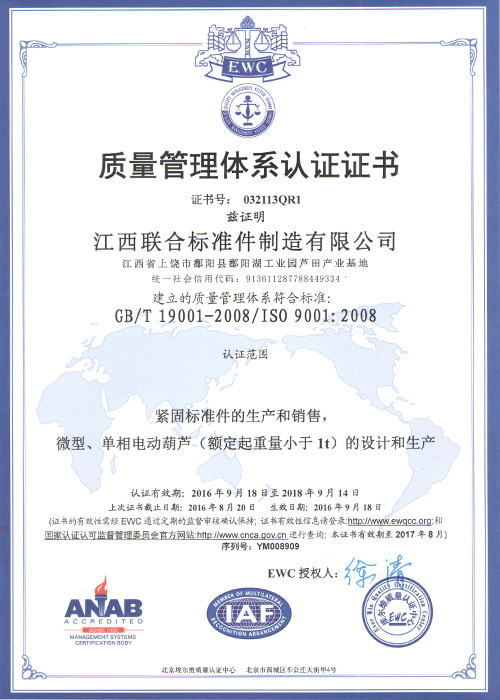 質量管理體系認證證書